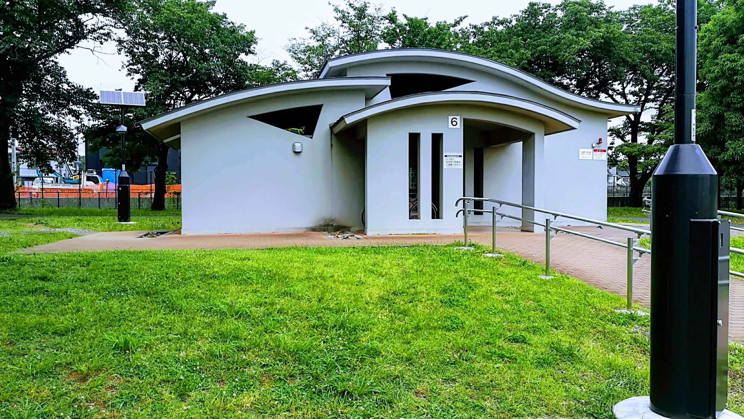 公園内には複数のトイレがある。近藤勇の生家跡へは、この公園を抜けて向かった。途中に、公園内のトイレがある。