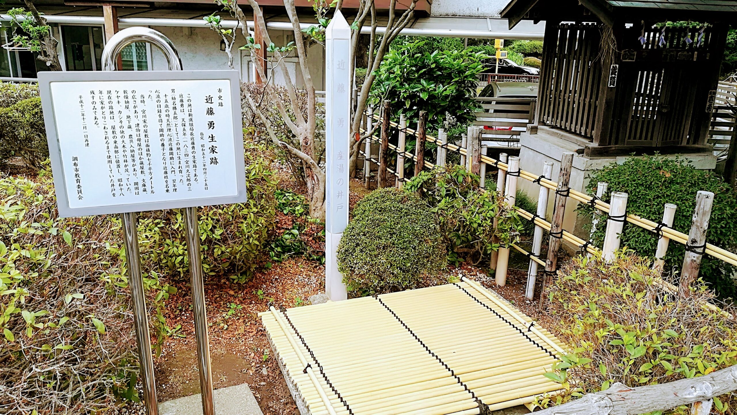 東京オリンピックのロードバイク競技のスタート地点である武蔵野の森公園を抜けたところに、近藤勇の生家跡はある。1834年にこの地に生誕した。