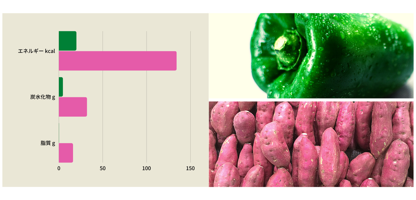ここではエネルギー量が多いさつま芋と比較しております。さつま芋ってすごいですね。