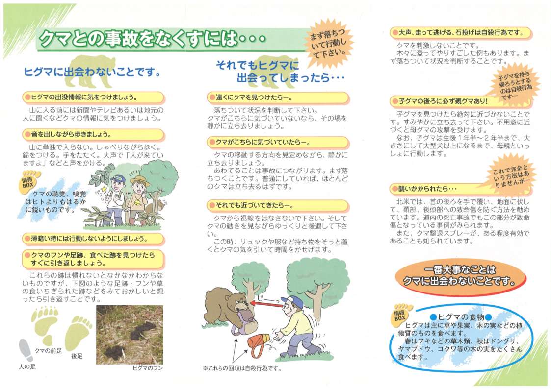 ・ クマをおどろかすので、大声を出したり、走って逃げるのはやめましょう。写真をとるためフラッシュを使うのも止めましょう。