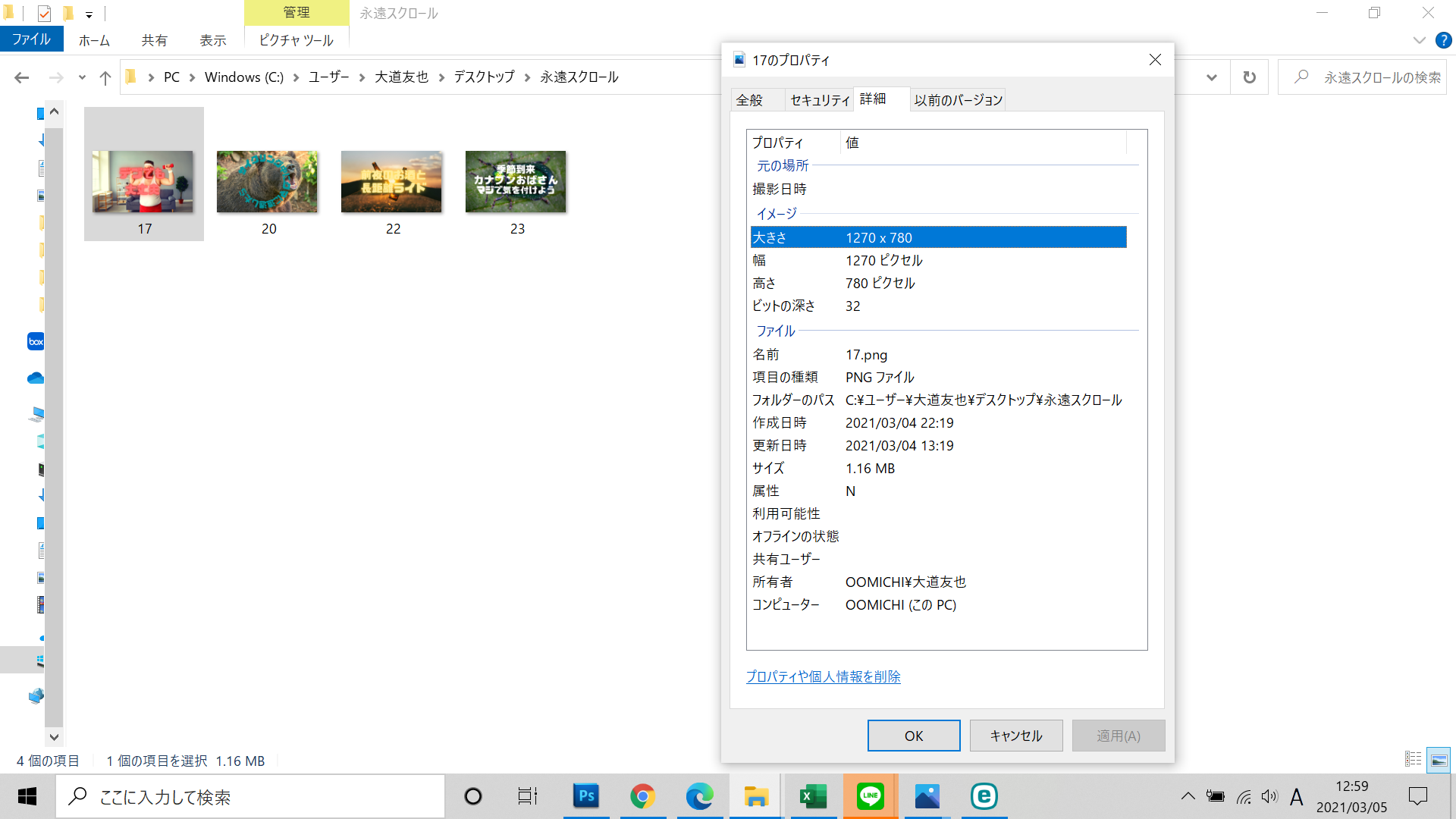 【学び】画像サイズの確認方法:右クリック↓プロパティ↓詳細↓大きさ