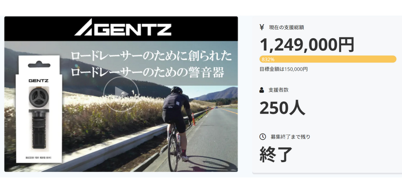この一言を頂いてから、ロードバイク専用の警音器「GENTZ」の開発を開始、開発後、クラウドファンディングを実施、そして現在は製品販売の為、WEBマーケティングやECサイトの運営をしております。