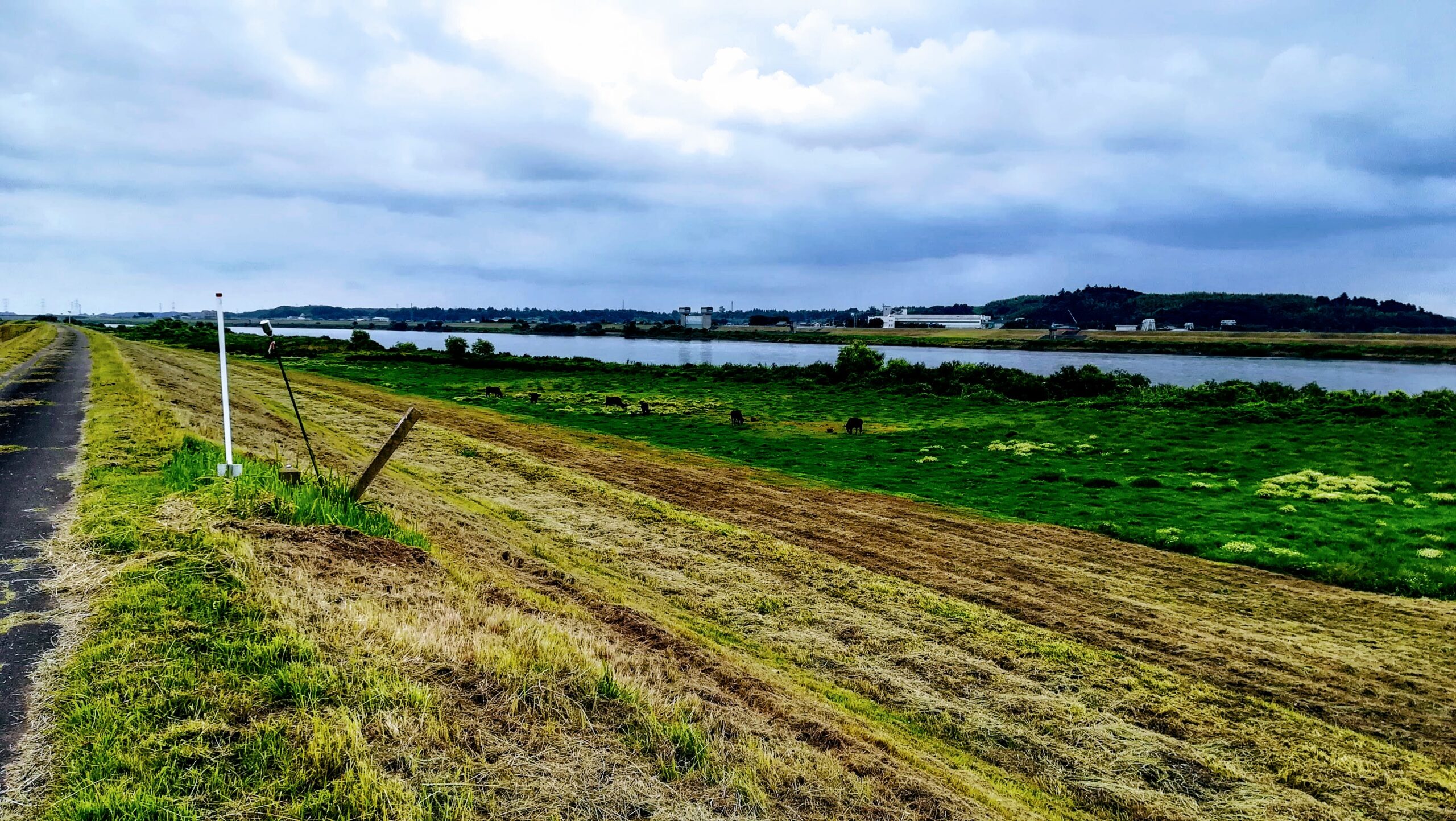 東京のサイクリングロードではなかなか見れない光景がそこにはありました。黒い大きな物体が草を食んでいるのを見つけ、徐々に近づくにつれそれは牛であることに気付きました。牧歌的な風景とはまさにこのことを言うのだなと…利根川サイクリングロードで牛さんのお陰でゆっくりとして穏やかな時間が流れました。
