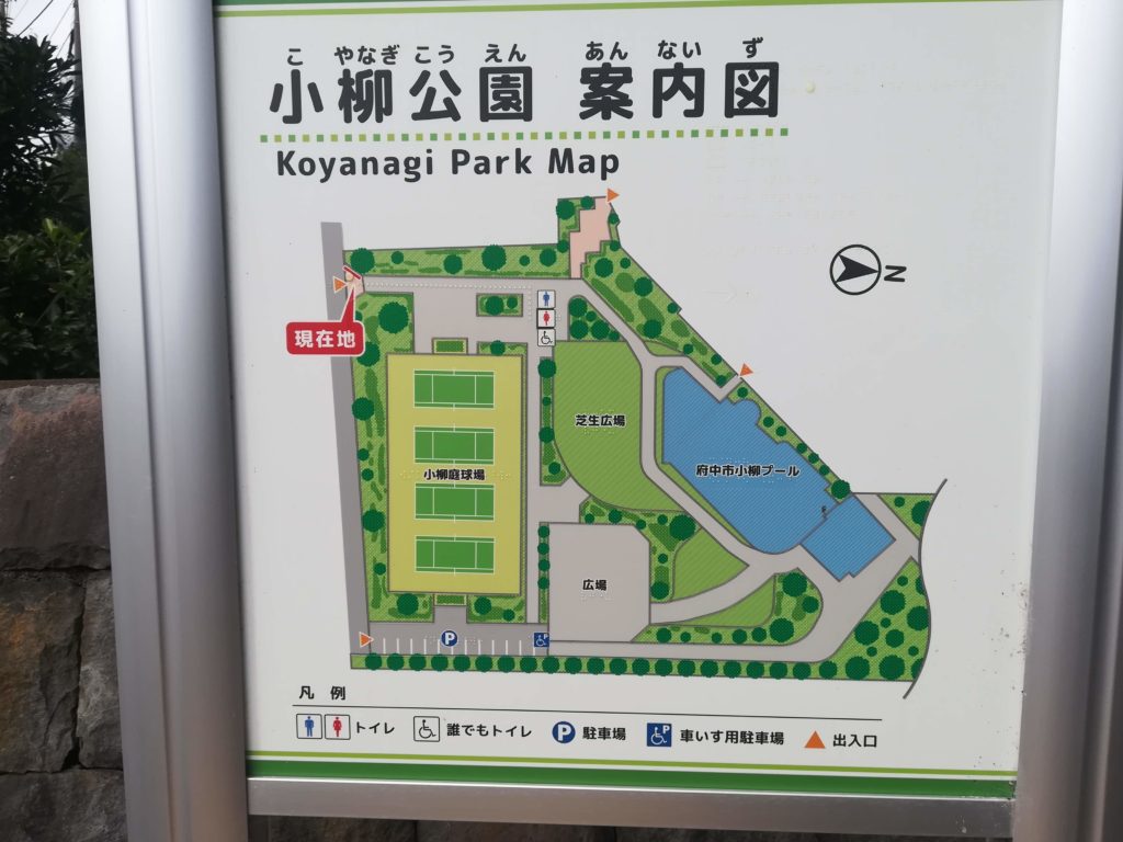 入口から少し奥に進んだところのテニスコート近くにトイレがあります。