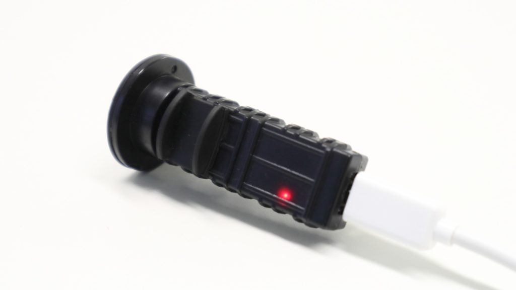 充電は1.5時間掛かります。充電時はLED赤色が点灯し、充電完了時はLEDが消灯します。
